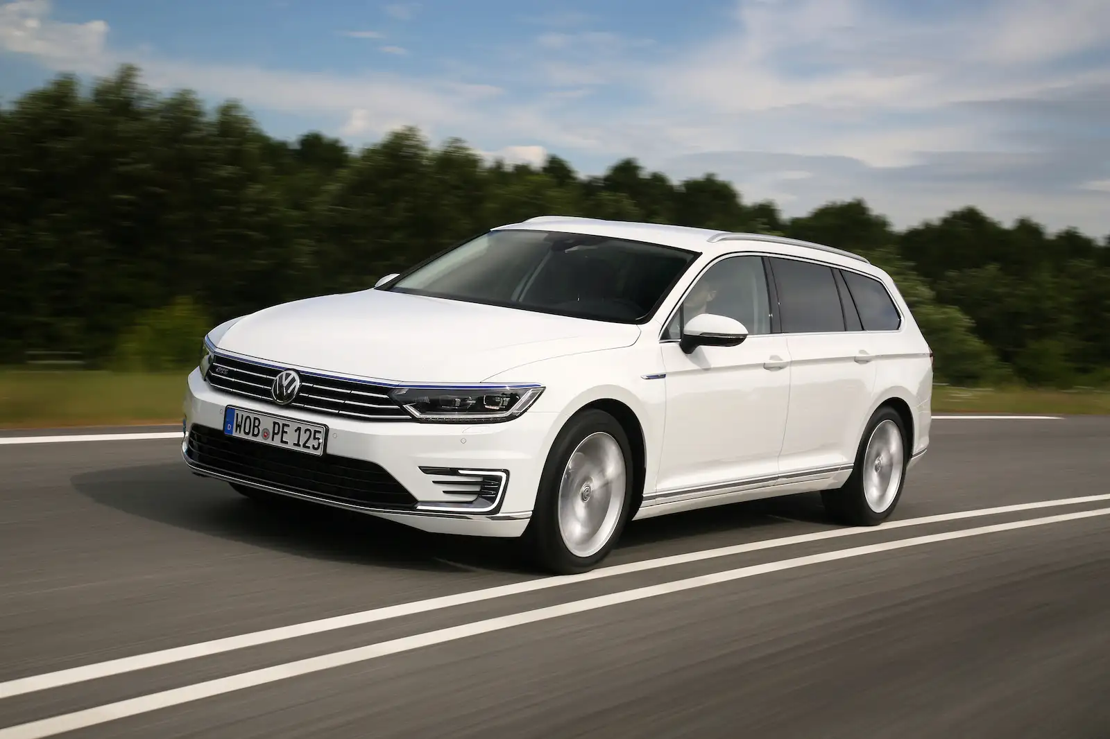 The Volkswagen Passat GTEs are plug-in hybrids based on the popular Passat estate car. What sets it apart visually are its C-shaped daytime running lights integrated into the front bumper.